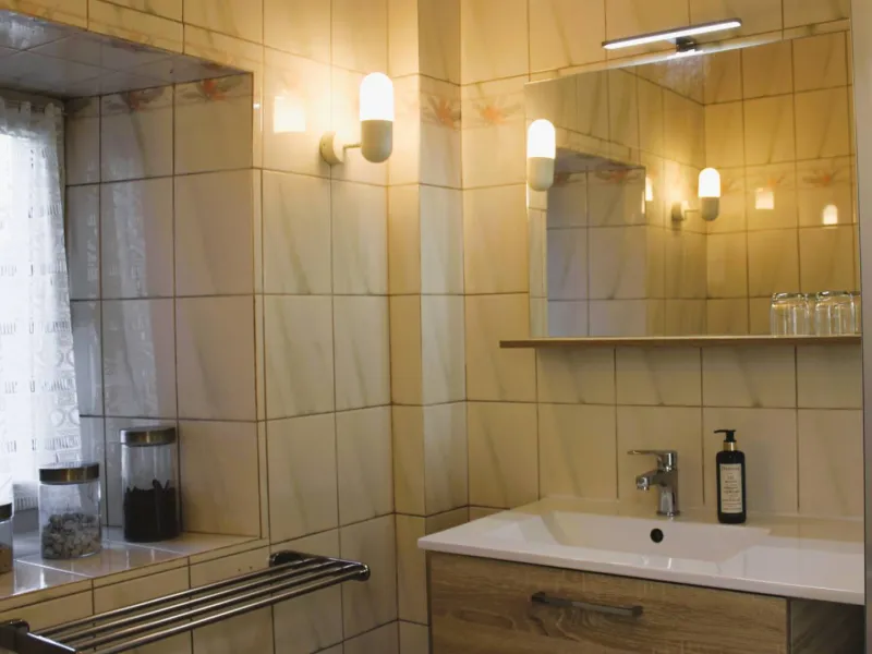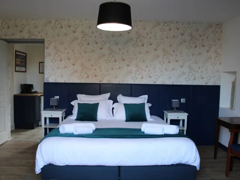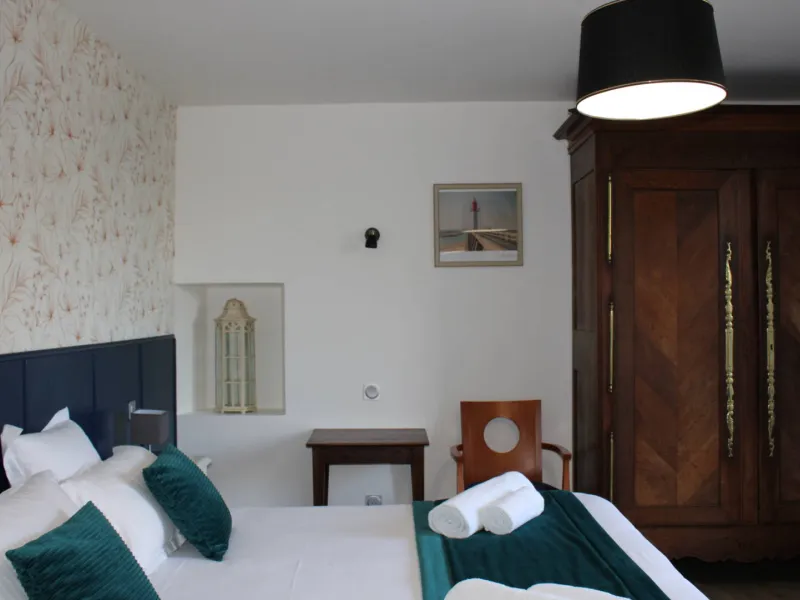 These 4 guest rooms can accommodate up to 14 people, 2 rooms on the ground floor for 3 people each (1 bed 140 and 1 bed 90) and 2 family rooms, upstairs for 4 people each (1 bed 160 and 32 beds 90). One of them is approved by Tourism Handicap.