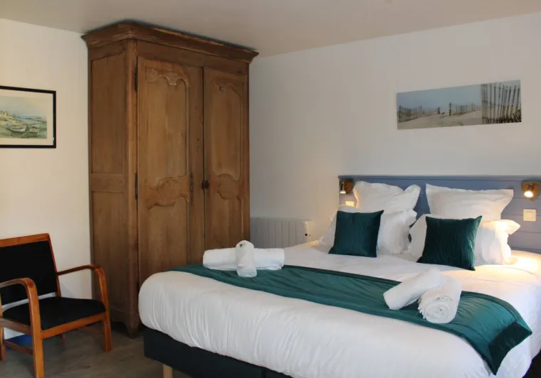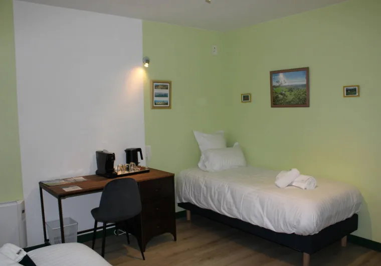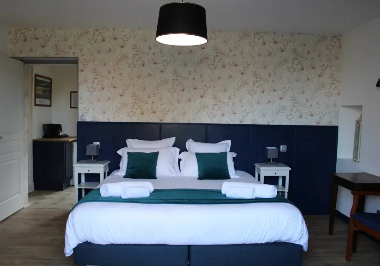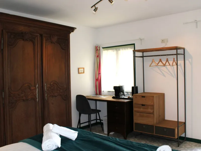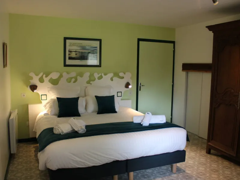 The guest room " Le Marais " is located on the ground floor. It is suitable for 3 people maximum (1 bed 140 and bed 90). A shower room with WC is adjacent. There is no TV. It is labeled Tourism Handicap. Pets are accepted.