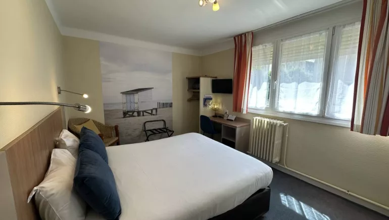In the city center of Caen in Normandy, halfway between the train station and the William the Conqueror castle. A quiet street at 2 steps from the marina, the theater and the convention center, close to stores and restaurants. Non-smoking establishment. Easy parking. Closing time 10 pm.