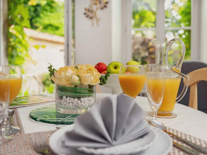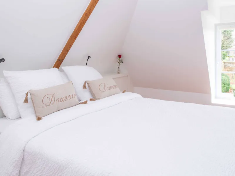 A real romantic cocoon in the bay of Mont St Michel, in the heart of a small dynamic town. With its bright living room offering a nice glimpse of the walled garden with trees and flowers, its bedrooms in the attic with refined tones, its flowery paintings on the walls, its neat decoration, its thick fabrics, the wisteria and the roses that eat at the windows, its intimate and fragrant terrace, the Gîte de la Rose offers a peaceful setting. Two guest rooms on the property. Public car park open 7 days a week 10 minutes from the gîte: 2 electric charging stations are available in this car park. Medical center (general practitioners, dentist, etc.), pharmacy, restaurants (possibility of delivery or take-out), as well as various shops within walking distance, market every Tuesday. Shopping center (with drive option) 800m open 6 days a week. Sanitary and hygiene protocol in place.Localisation